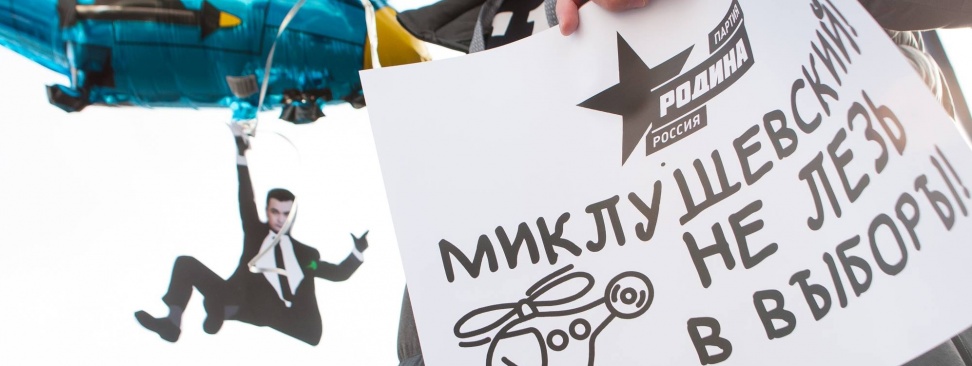 Неделей ранее Приморский краевой суд аннулировал результаты выборов в думу Спасского района. Партия "РОДИНА" на это ответила серией пикетов под лозунгом "Миклушевский, хватит летать, пора садиться" у здания представительства Приморского края в Москве, а также в самом Приморье, символично запуская в небо воздушные шары в виде вертолета с фотографиями губернатора Приморского края Владимира Миклушевского.