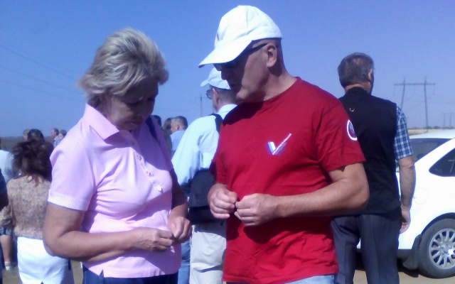 Председатель регионального отделения партии "РОДИНА" Константин Глушенок и его заместитель Наталья Латышевская первыми начали посевную, а до этого они выступили перед собравшимися.